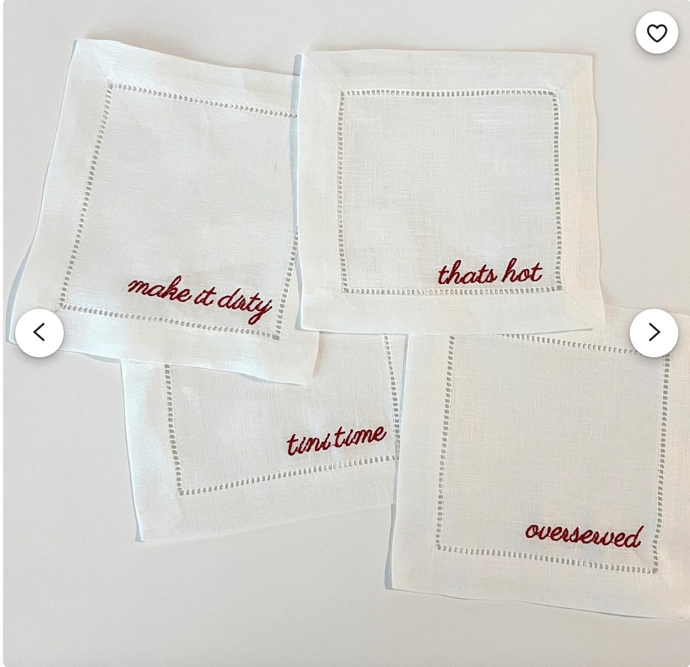 Embroidered Cocktail Napkins from Thread And Early Bed, $30