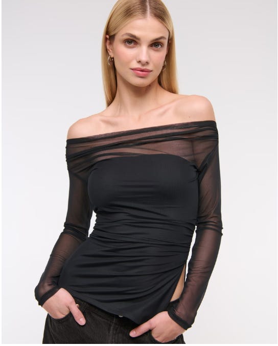 Off-The-Shoulder Draped Mesh Top from Abercrombie, $50
