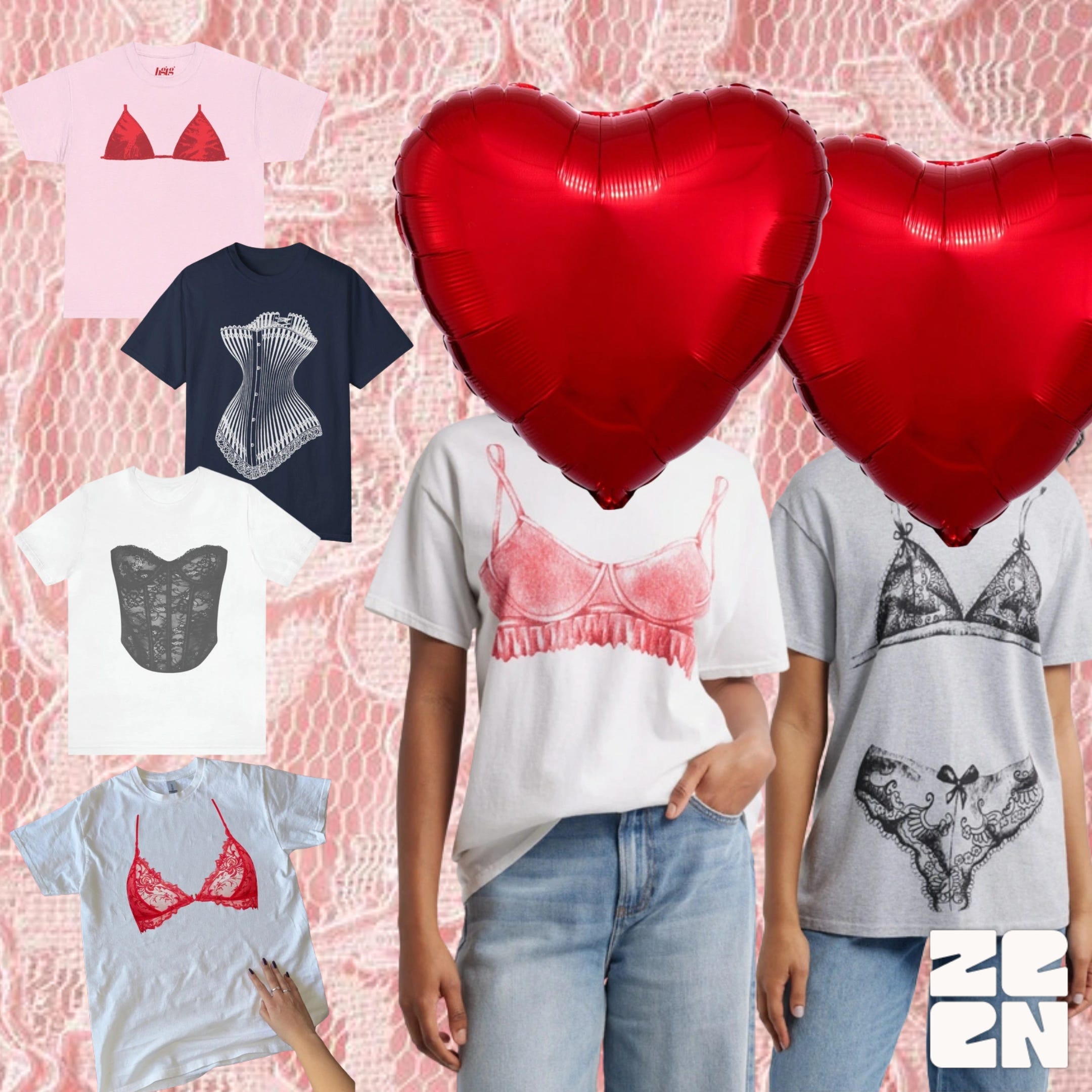 In that vein (get it, ❤️ pun), I have been obsessed with this Glassons graphic bikini top that is only available in New Zealand… but it led me down the rabbit hole of lingerie and bustier graphic tees, and I love them! It’s camp in allll the best ways to me, especially for a lil V-Day day outfit :)