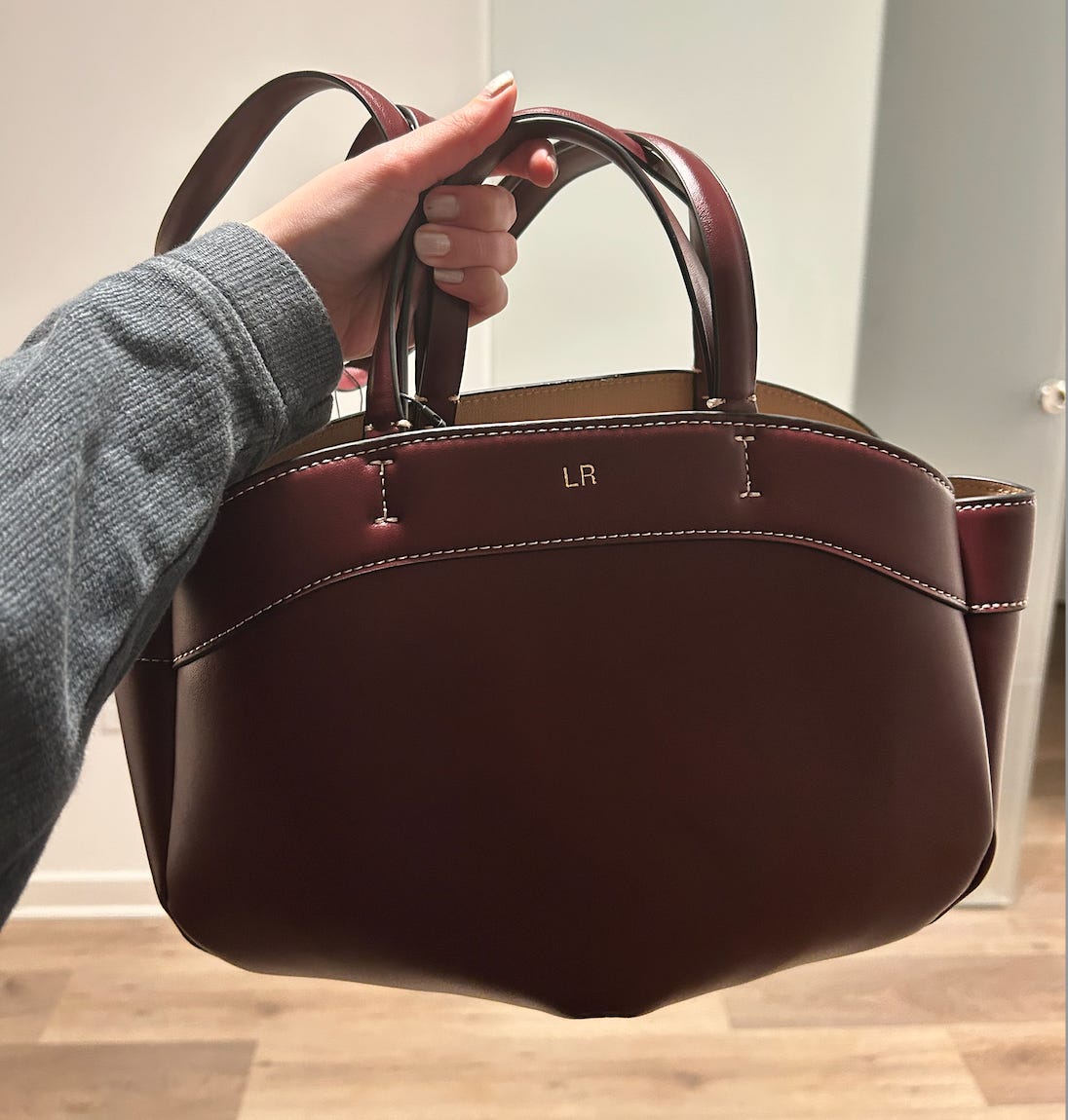 This one is a recent personal purchase that I LOVE! I have had a complicated relationship with Zara and took a looooong break because of the issues raised with their sustainability. I feel a bit better about them now (especially since they launched Zara Pre-owned, which actually is kind of great??). But when I saw this burgundy bag with the tiny monogram, I couldn’t resist! (I believe this color is almost sold out, but they also have it in brown.)